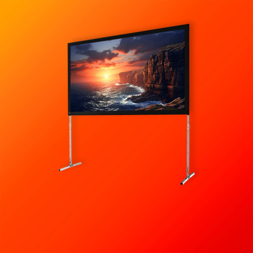Ausgestattet mit einem hochwertigen mattweißen Typ-D-PVC-Tuch, das einen Gain von 1,2 und einen Betrachtungswinkel von 150° bietet, ist die Leinwand ideal für die Darstellung von hochauflösenden 4K-Inhalten. Das Tuch ist dauerhaft perfekt gespannt und bietet dank seiner fein strukturierten Oberfläche und Brandschutzkonformität eine sichere und hochwertige Bildwiedergabe.