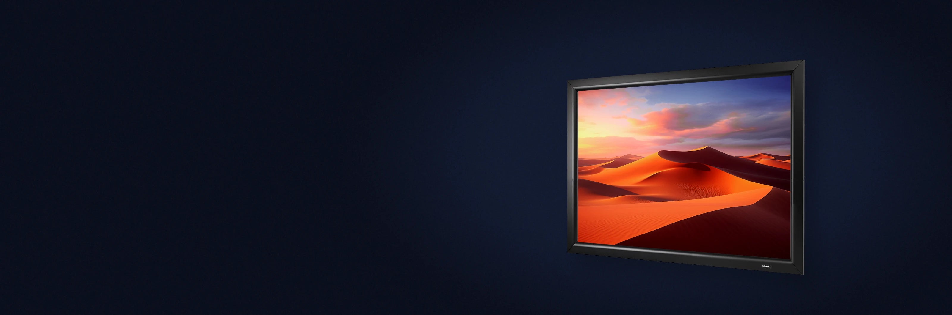 Die Montage ist dank des neu entwickelten, werkzeuglosen Keder-Spannsystems und des anpassbaren Schienensystems einfach und erfordert nur einmaliges Bohren. Das Ergebnis ist eine stets perfekt gespannte Leinwand mit 221,5 x 124,5 cm sichtbarem Bereich und einem schlanken, matt-schwarzen Rahmen, die auch für Ultra-Kurzdistanz-Projektoren optimiert ist.
