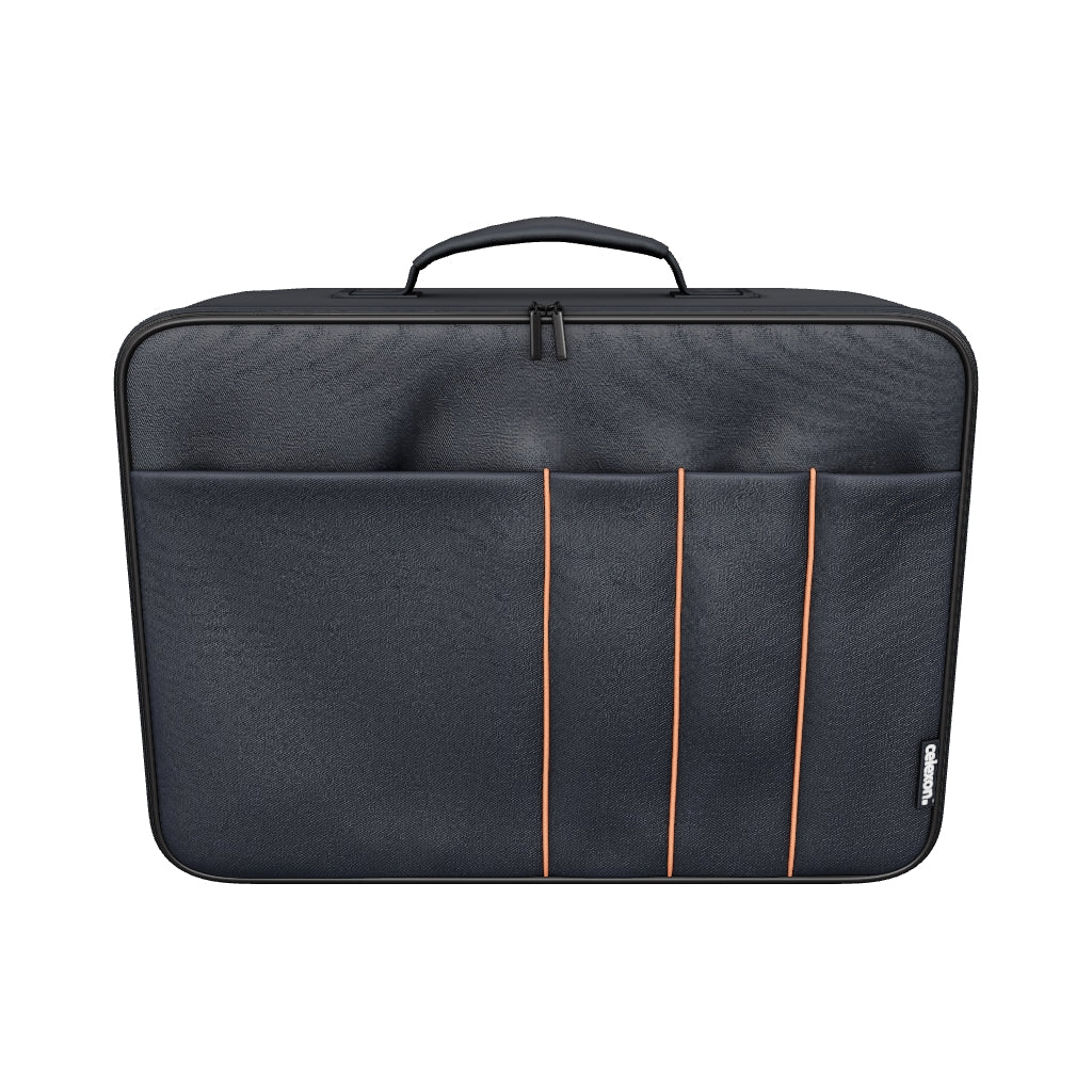 Die celexon Tasche ist dank ihres seitlichen Hartschalenrahmens extrem stabil und schützt den Inhalt gegen seitliche Stöße und Schläge. Das Äußere der Tasche ist abwaschbar und wasserabweisend. Kunststofffüße an der Unterseite schützen beim Abstellen vor Feuchtigkeit.