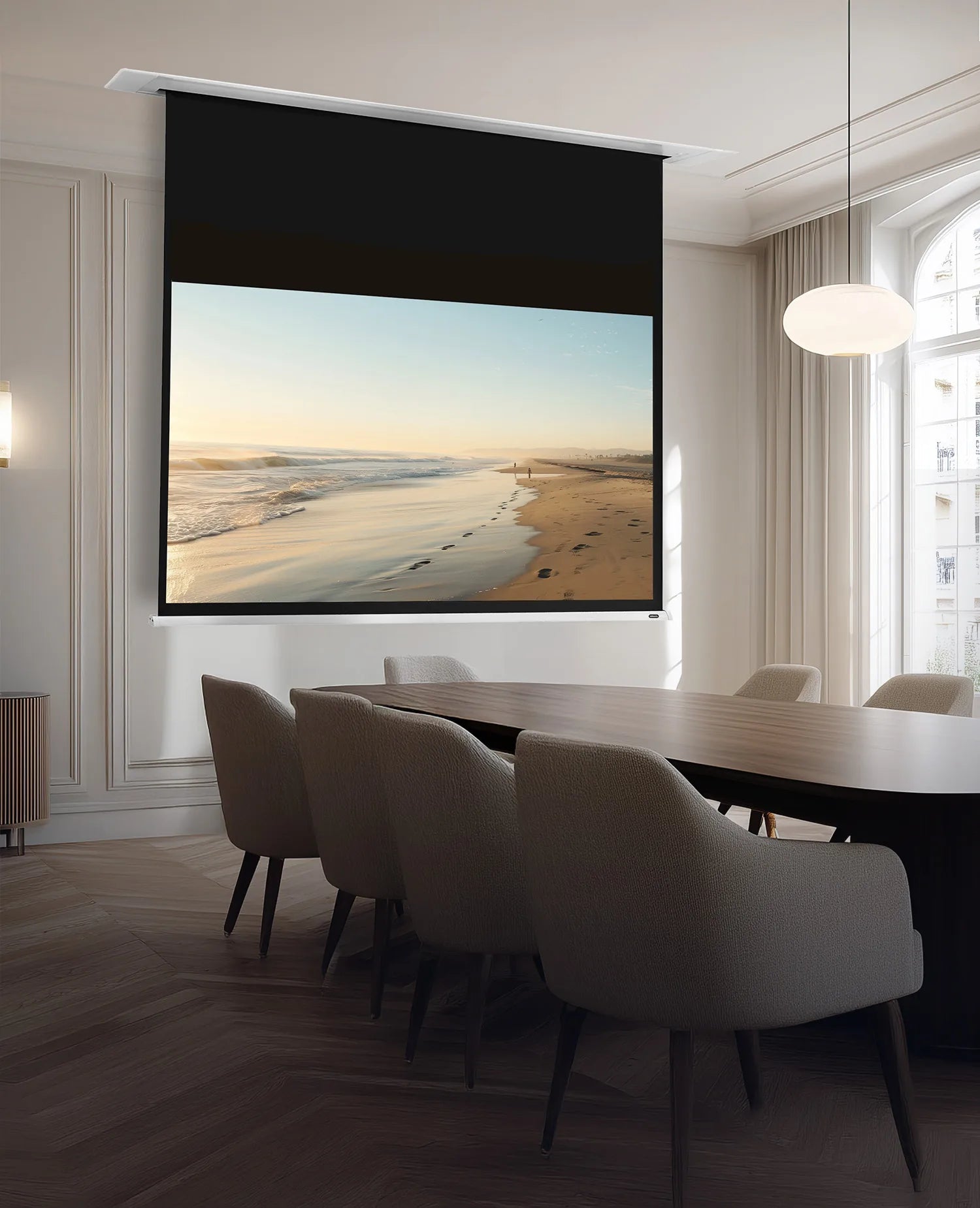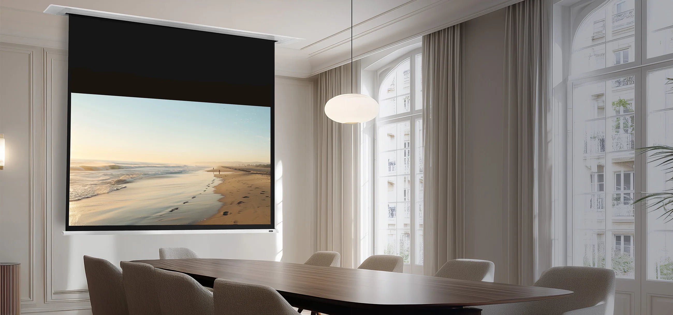 Die neue celexon Deckeneinbau Leinwand Motor Professional Plus ist die Weiterentwicklung unserer beliebten Professional Deckeneinbau-Serie. Das nunmehr stranggepresste Aluminiumgehäuse verfügt über eine ausgezeichnete Formstabilität und fügt sich dezent in Ihre Räumlichkeit ein. Der Einbaurahmen und die Beschwerungsstange schließen dabei bündig mit der Decke ab und bieten einen eleganten, unauffälligen Abschluss.