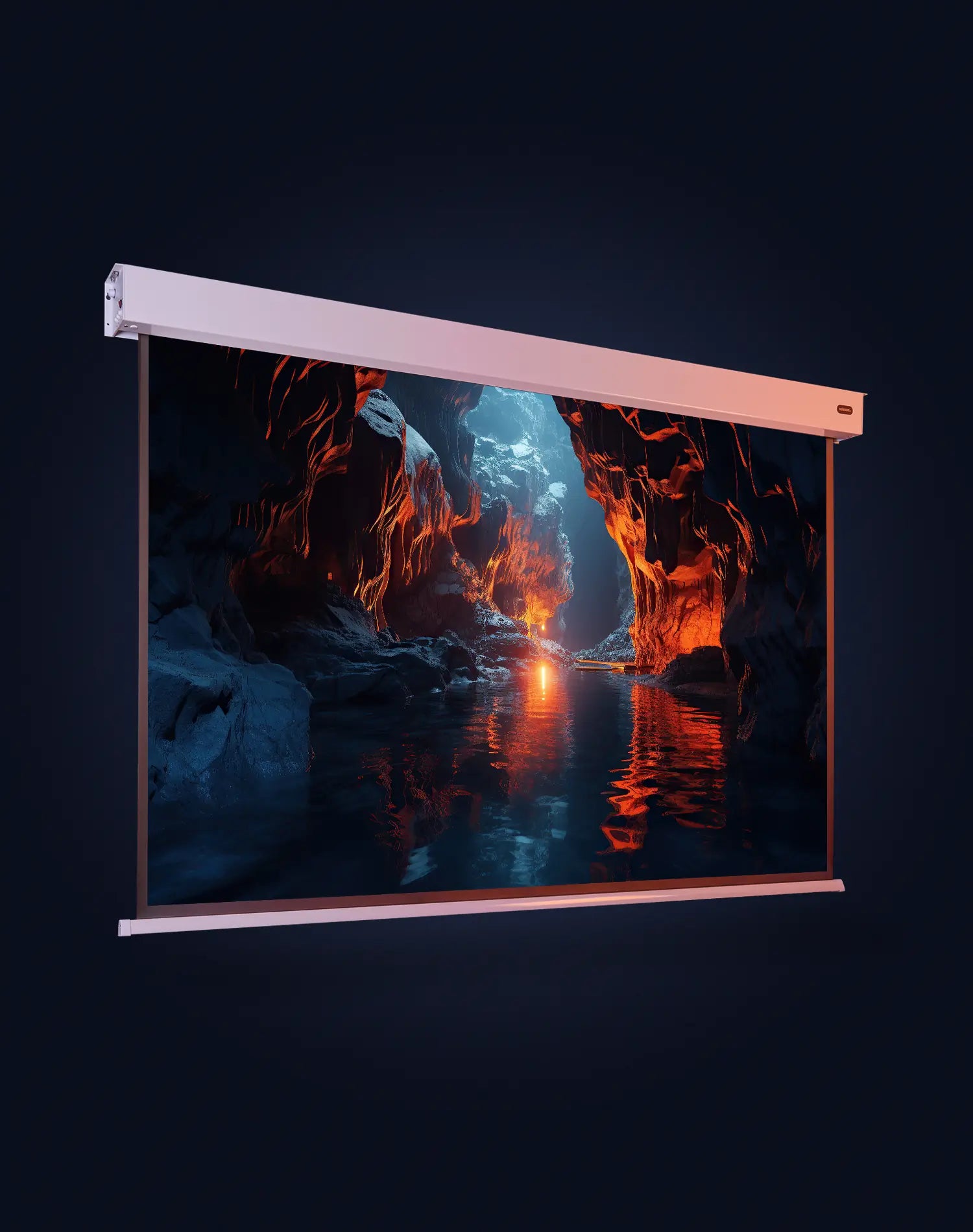 The perfect home cinema screen for movie and series lovers! With a high-quality projection screen material from the Professional series, a modern casing and various options – manual, electric & high contrast – it ensures brilliant colours and a real cinema experience in your own four walls.