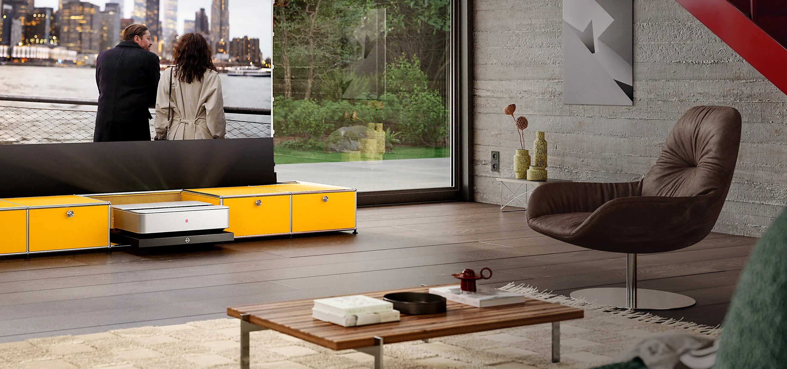 The cubist shape also allows the drawer to be concealed or built into your furniture, creating a design solution that is as unobtrusive as possible for a breathtaking laser TV experience.