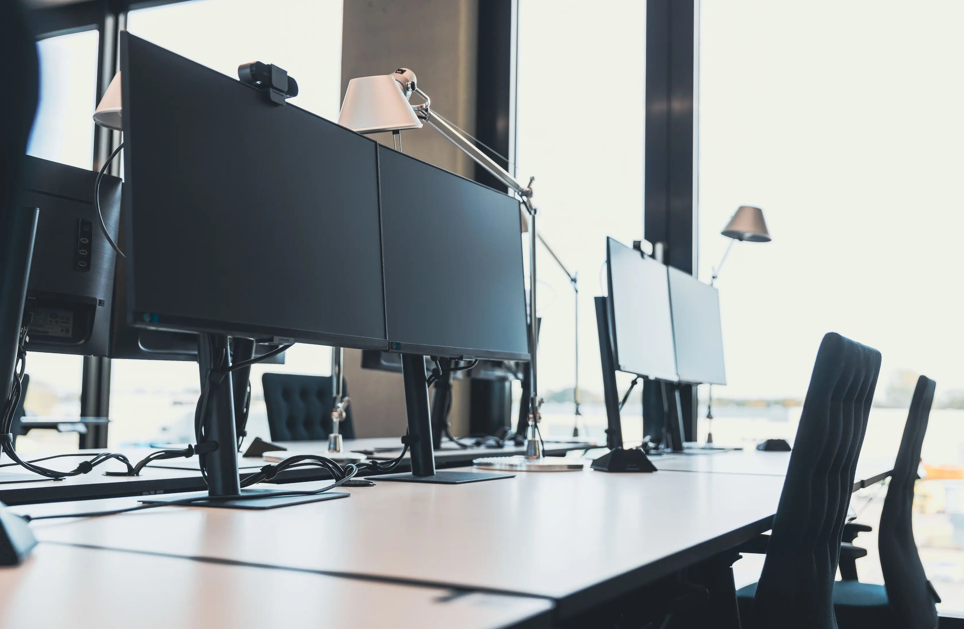 - Puesto de trabajo moderno y ergonómico con escritorio ajustable en altura y oficinas climatizadas.