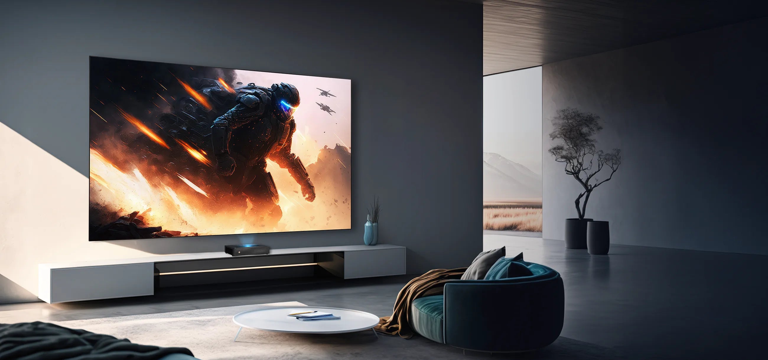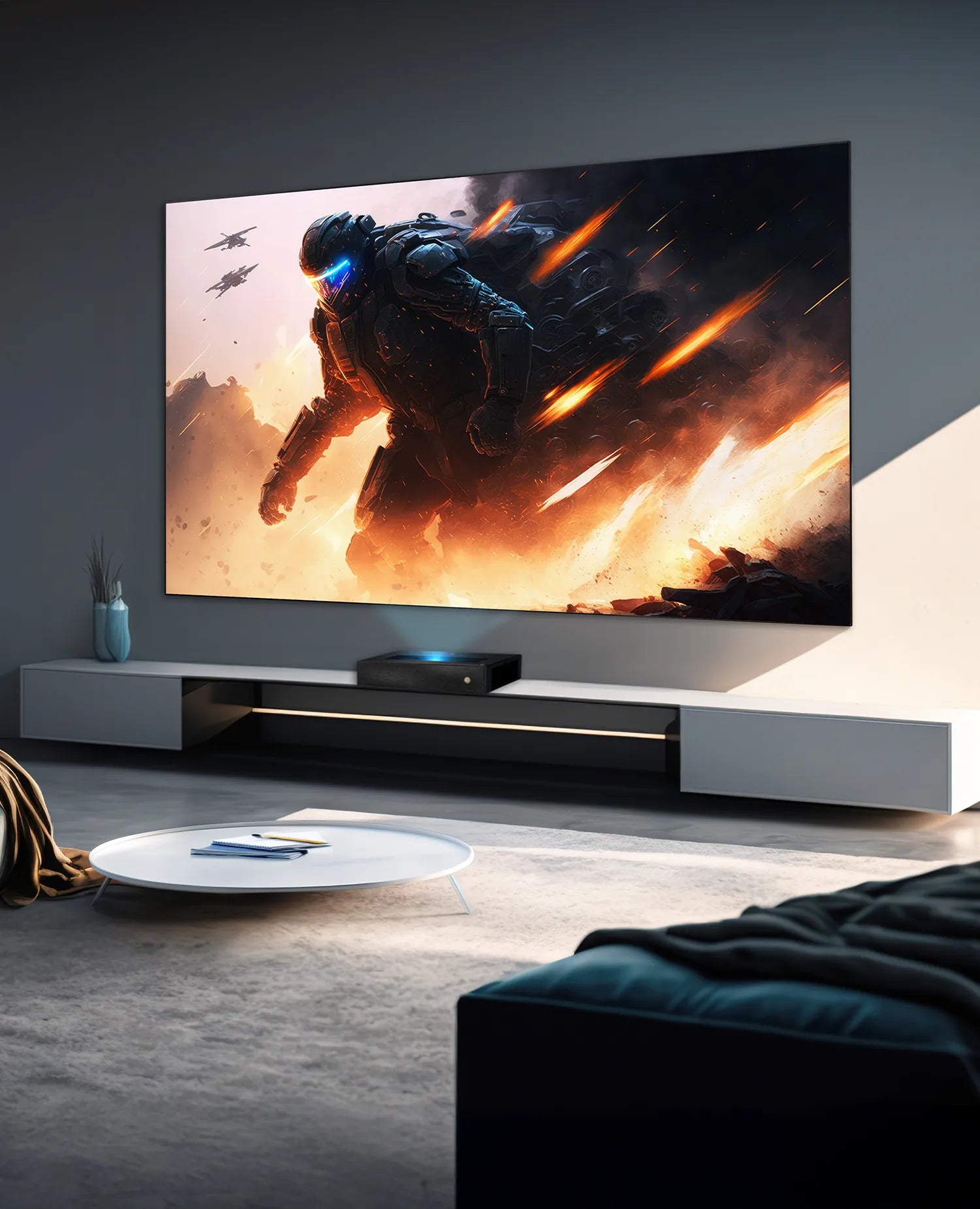 Nuestra última pantalla láser para televisión es el resultado de años de experiencia y desarrollo en el campo de las superficies de proyección ALR.