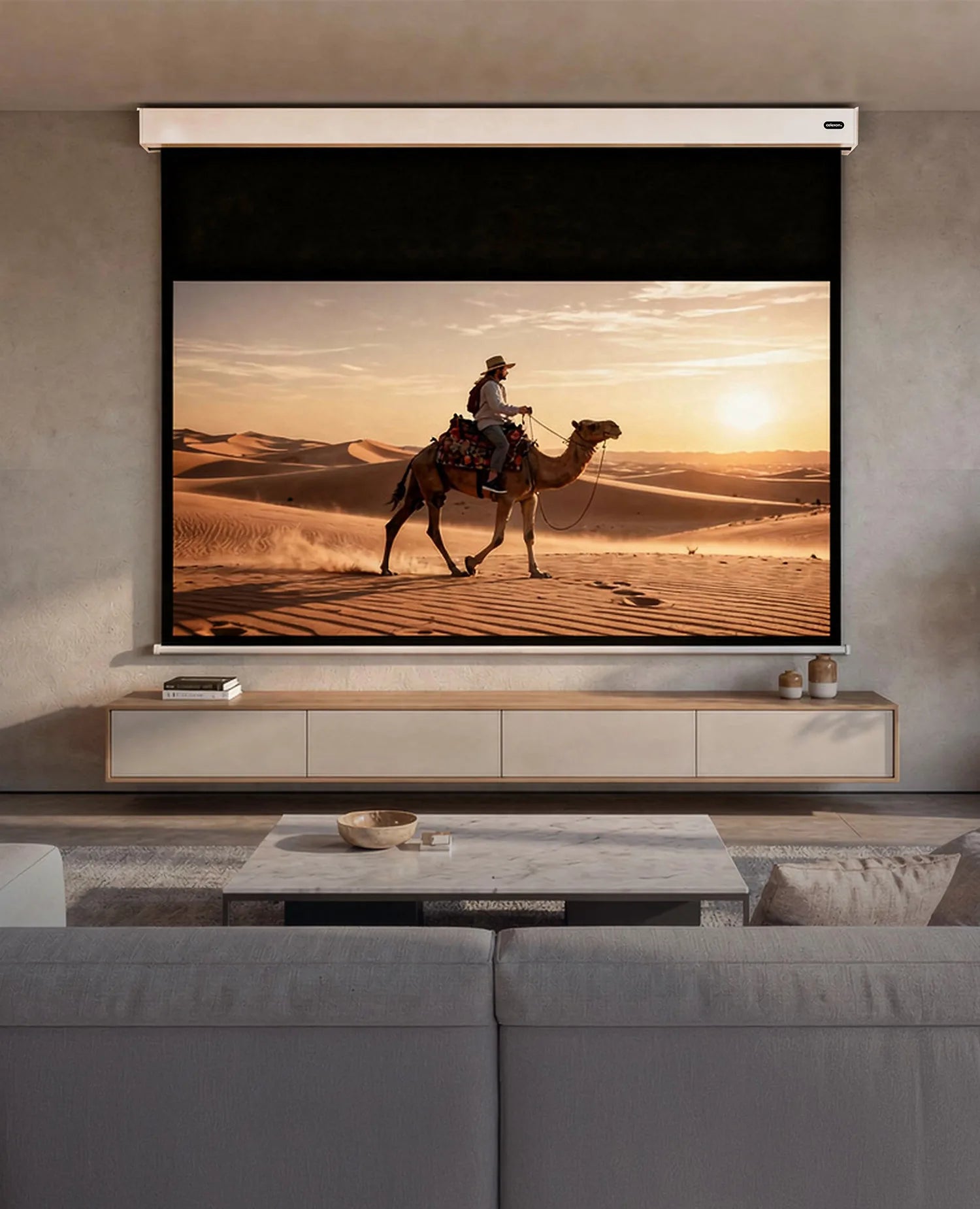 La celexon Professional Plus V2.0 pantalla motorizada con batería es una solución elegante y discreta.