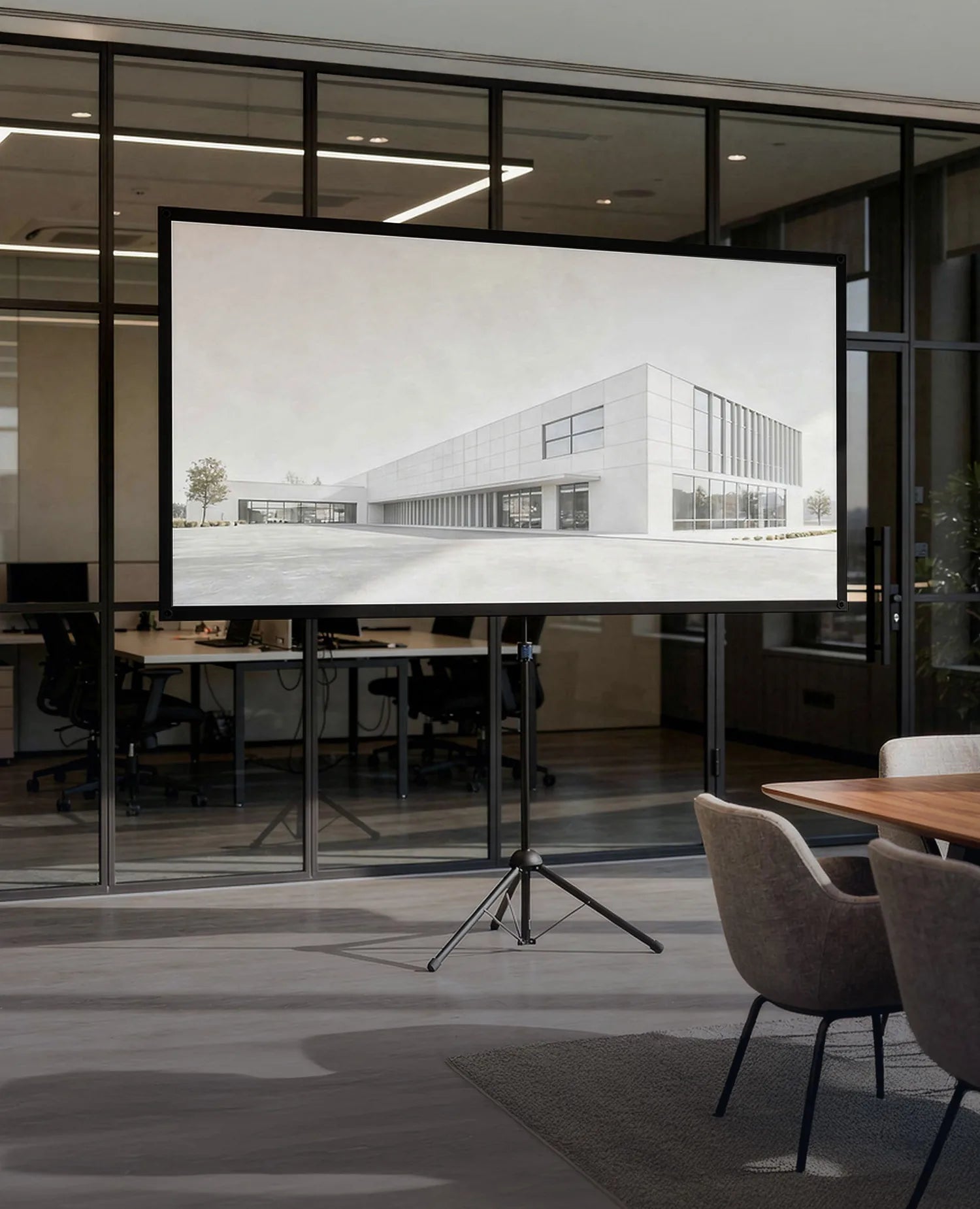 - incl. pie de trípode y varilla ajustable en altura para sujetar la pantalla.