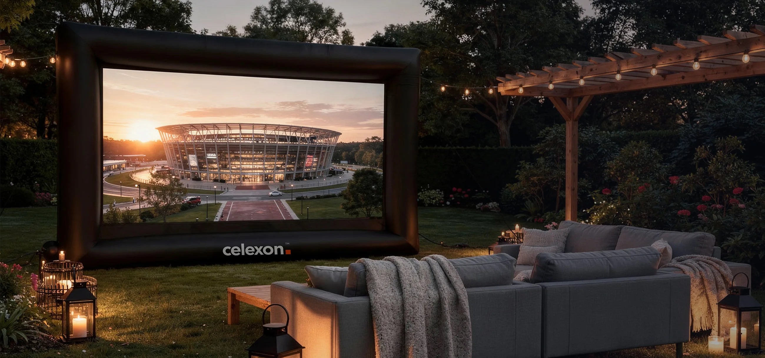 Experimente el cine al aire libre a un precio inmejorable con la pantalla hinchable exterior de celexon INF200. Si está buscando disfrutar del cine en la terraza, el jardin o en un evento, nuestra pantalla ofrece la posibilidad de presentar imágnes con una diagonal de más de 350 cm.