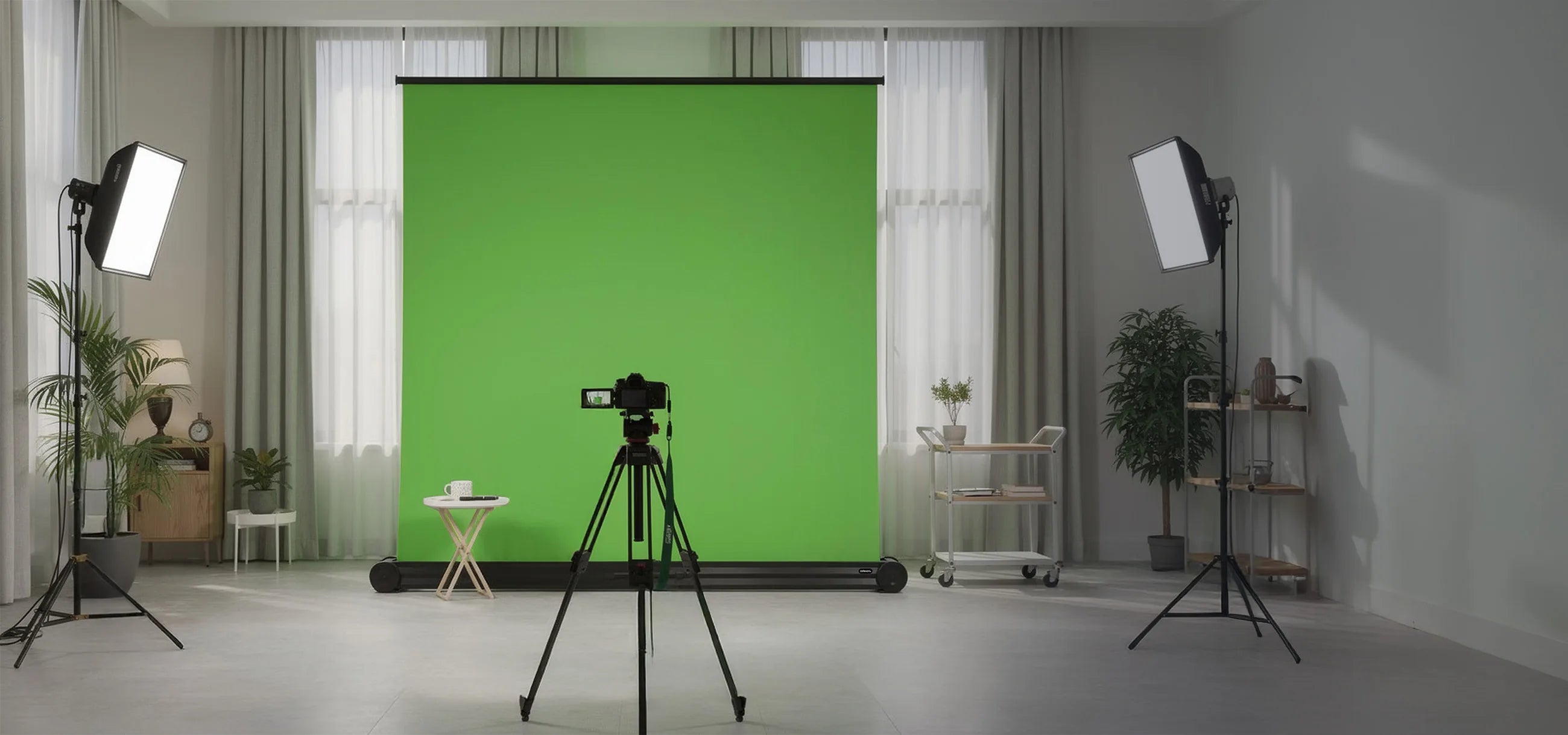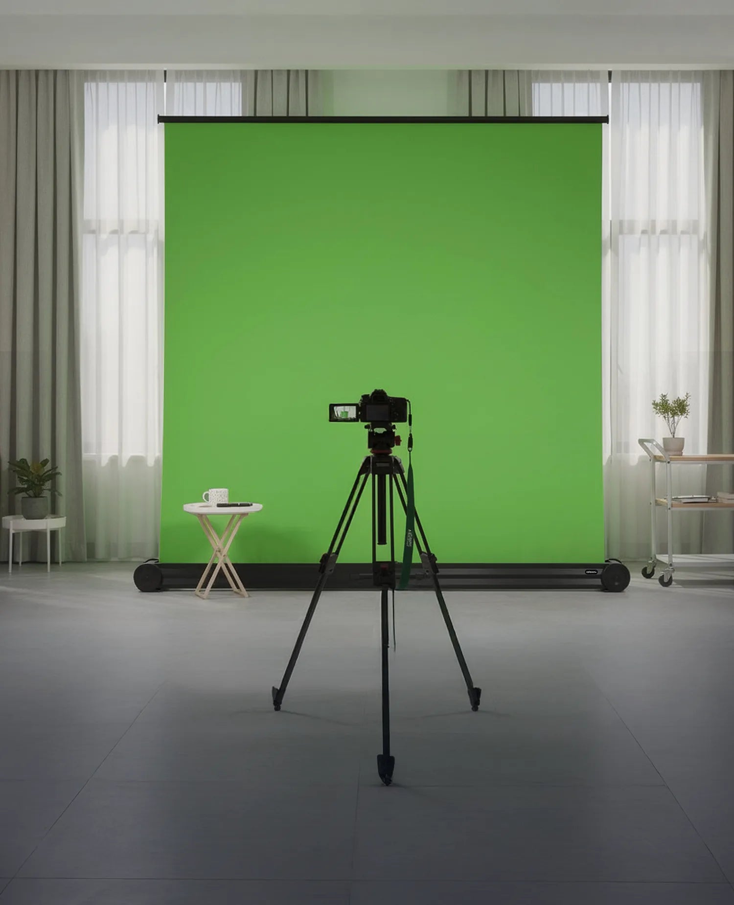 L'écran celexon Mobile Chroma Key Green Screen dispose d'une Écran de projection de 150cm de large. Avec une hauteur de Écran de projection de 180 cm (bord supérieur de la surface verte à partir du sol à 187 cm), il atteint une taille moyenne, ce qui permet également de filmer en position debout.