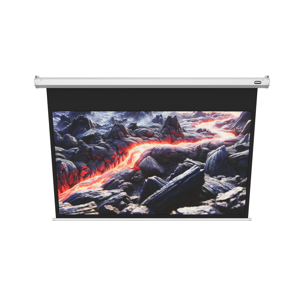 Nous avons développé l'écran motorisé tensionné HomeCinema spécialement pour les fans de cinéma et de Home cinéma. Cet écran HomeCinema présente une Écran de projection de projection finement texturée idéale pour les contenus 4K et offre un gain de 1,0.