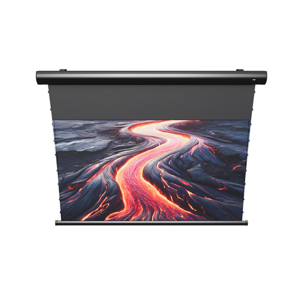 La Écran de projection UST à contraste élevé garantit des images exceptionnellement contrastées, même dans une forte lumière ambiante. Profitez d'une lecture aux couleurs vraies, sans point de chaleur, avec des noirs profonds et une clarté d'image élevée qui établit de nouvelles normes dans votre cinéma maison ou votre salon.