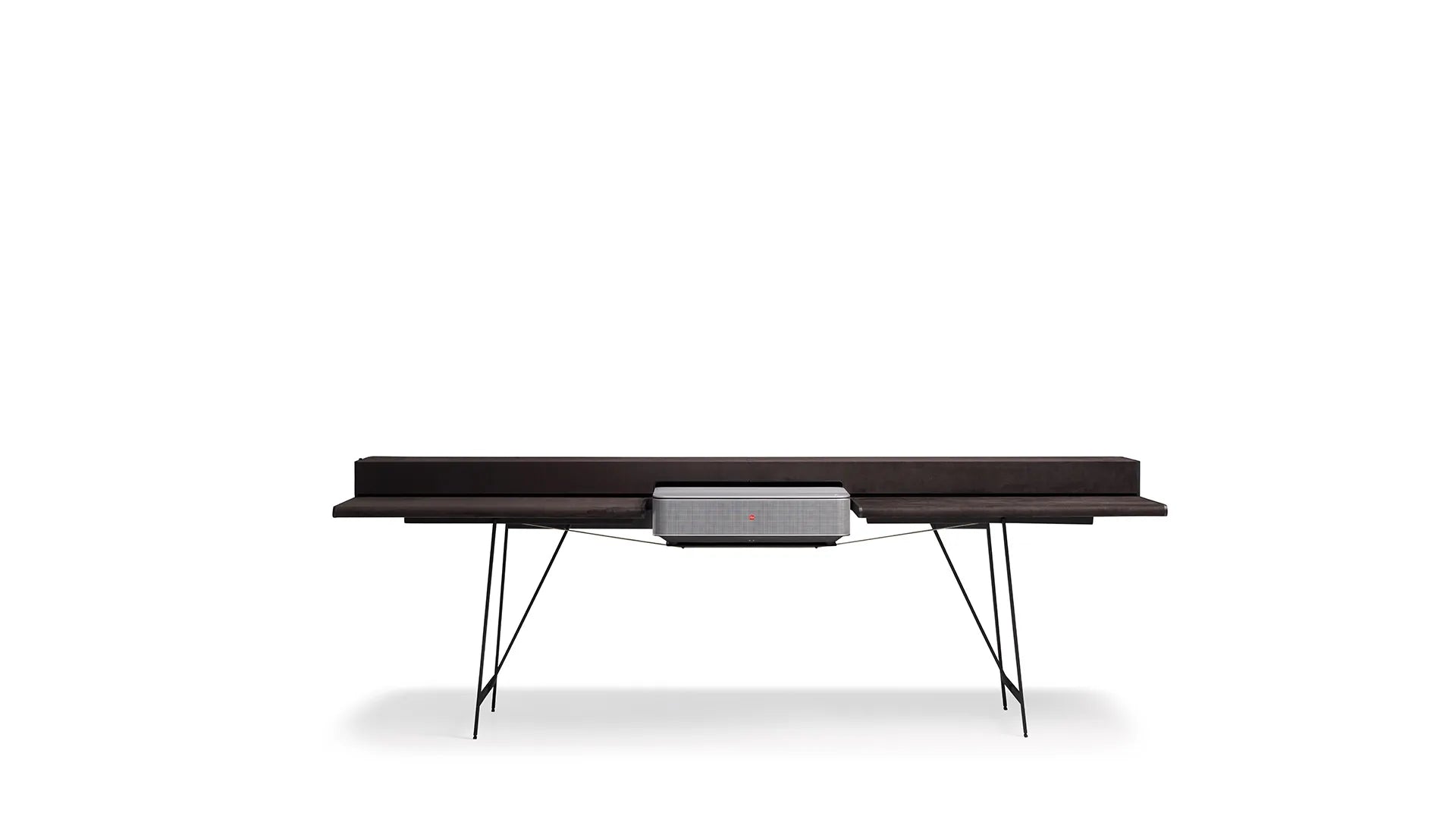 L’écran intégré reste discrètement dissimulé derrière un panneau – une solution ingénieuse basée sur la technologie éprouvée Magic Desk de YOMEI. Ainsi, la fonctionnalité demeure invisible jusqu’à ce qu’elle soit nécessaire.