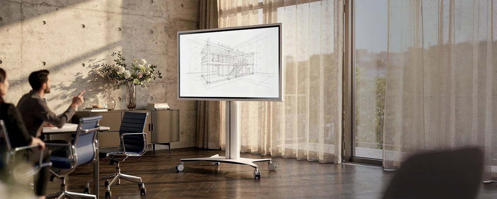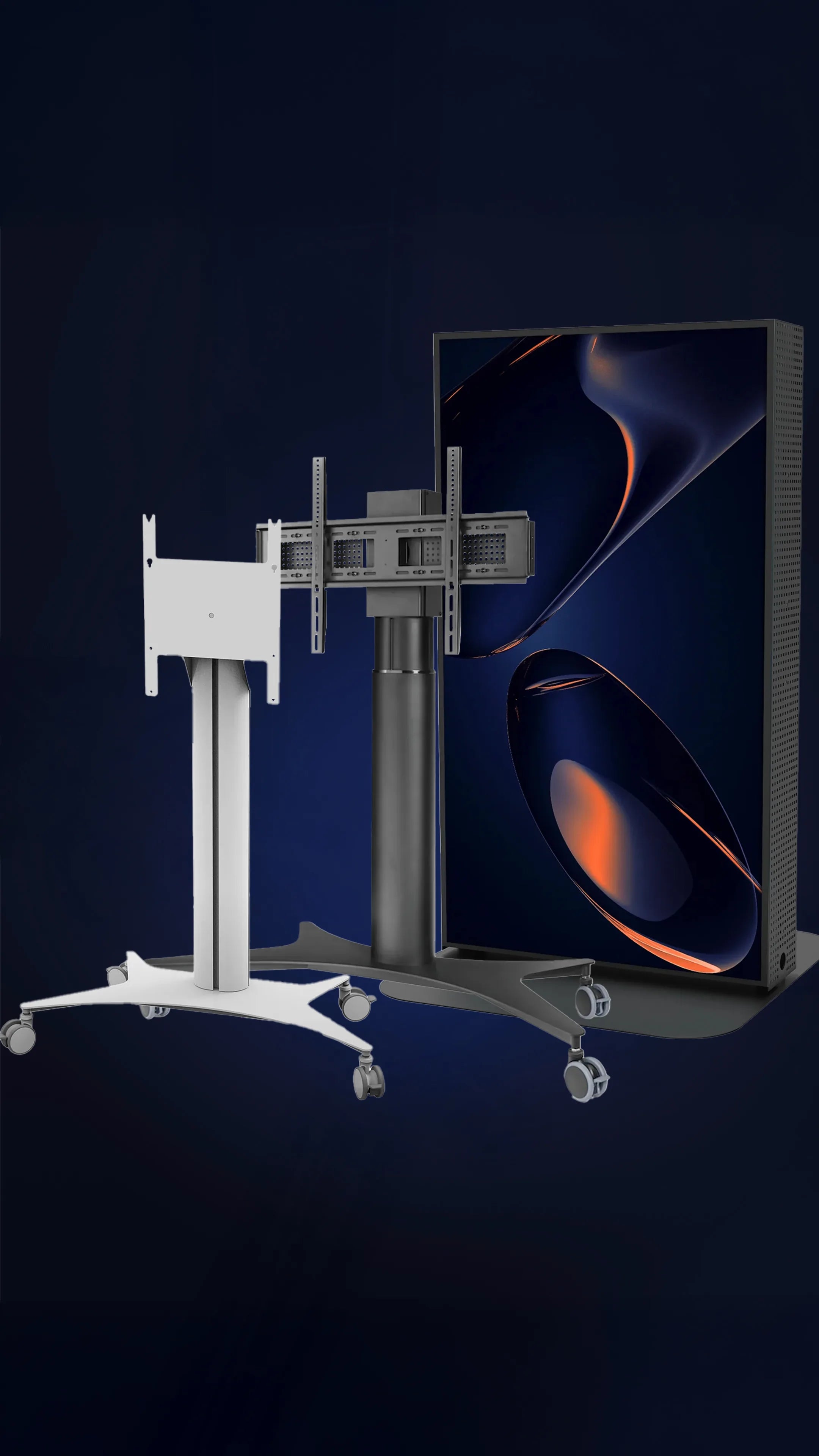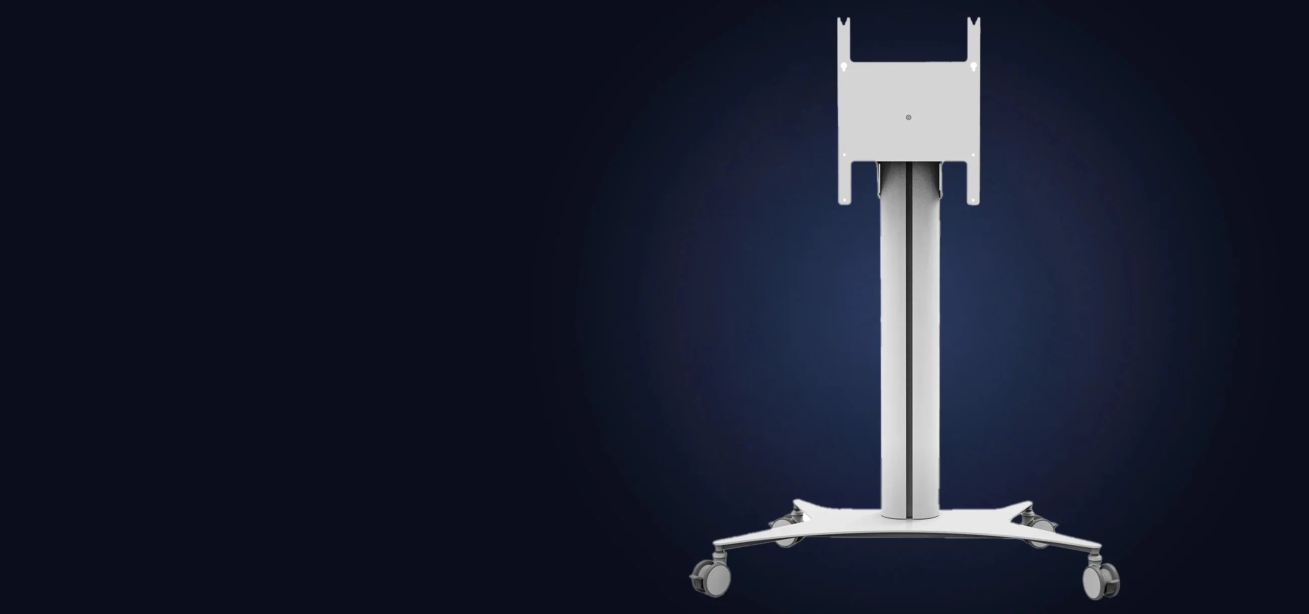 Les pieds d'écran et les chariots sont l'alternative mobile au montage mural. Grâce aux roulettes et au réglage en hauteur sans paliers, ils peuvent être rapidement déplacés de pièce en pièce et utilisés de manière flexible. Que ce soit en salle de classe, en salle de réunion ou au bureau — partout où l'écran ne doit pas être installé de façon permanente, les chariots sont le choix pratique.