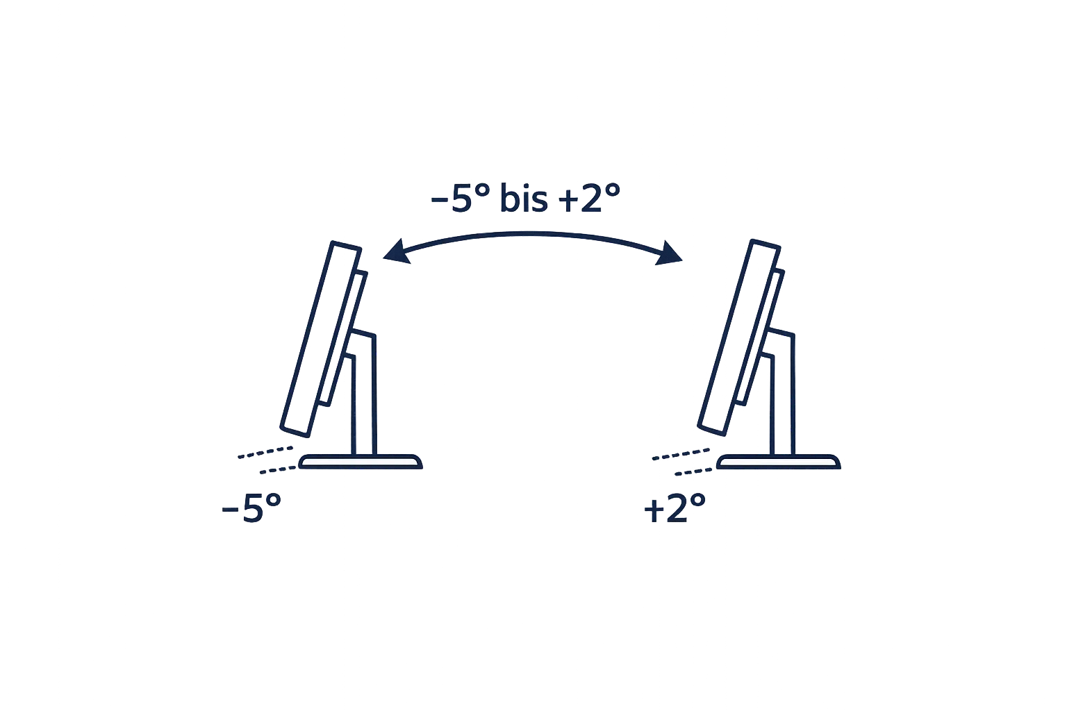 Un écran légèrement incliné vers l'arrière réduit sensiblement les reflets et la sollicitation du cou — cela vaut aussi bien pour les petits moniteurs que pour les grands écrans de conférence et scolaires. Les supports orientables ajustables et les chariots à hauteur réglable permettent un réglage facile sans outils.