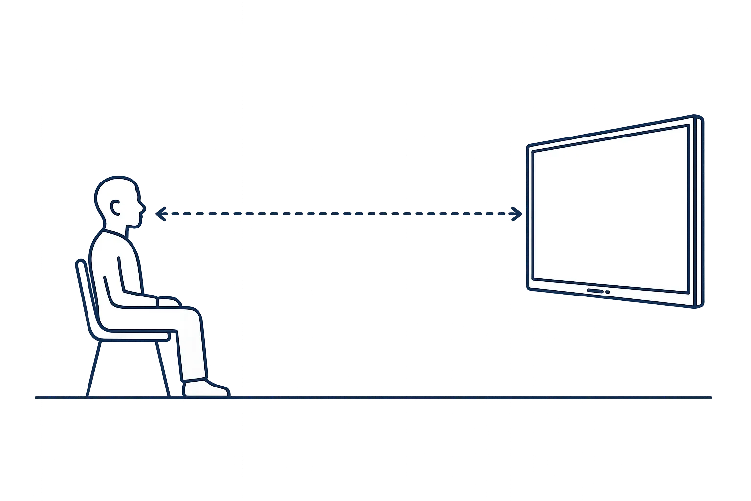 La distance de visualisation idéale dépend fortement de la taille de l'écran. En règle générale pour une résolution 4K, on applique 1,5 fois la diagonale de l'écran — pour un écran de 65" (env. 165 cm de diagonale), cela représente environ 2,5 mètres, pour un écran de 86" (env. 218 cm), environ 3,3 mètres.
