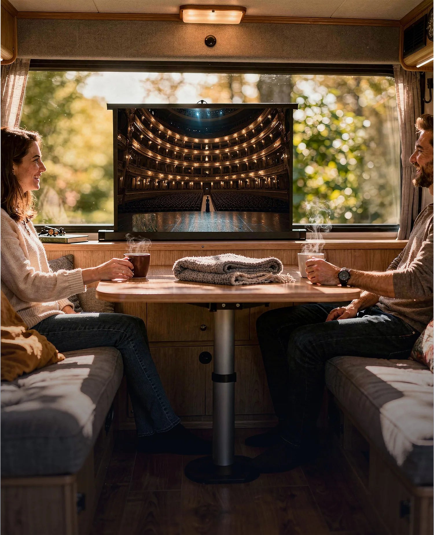 L’écran de projection Mini PRO présente un très excellent tendu grâce à son système d’enroulement automatique.