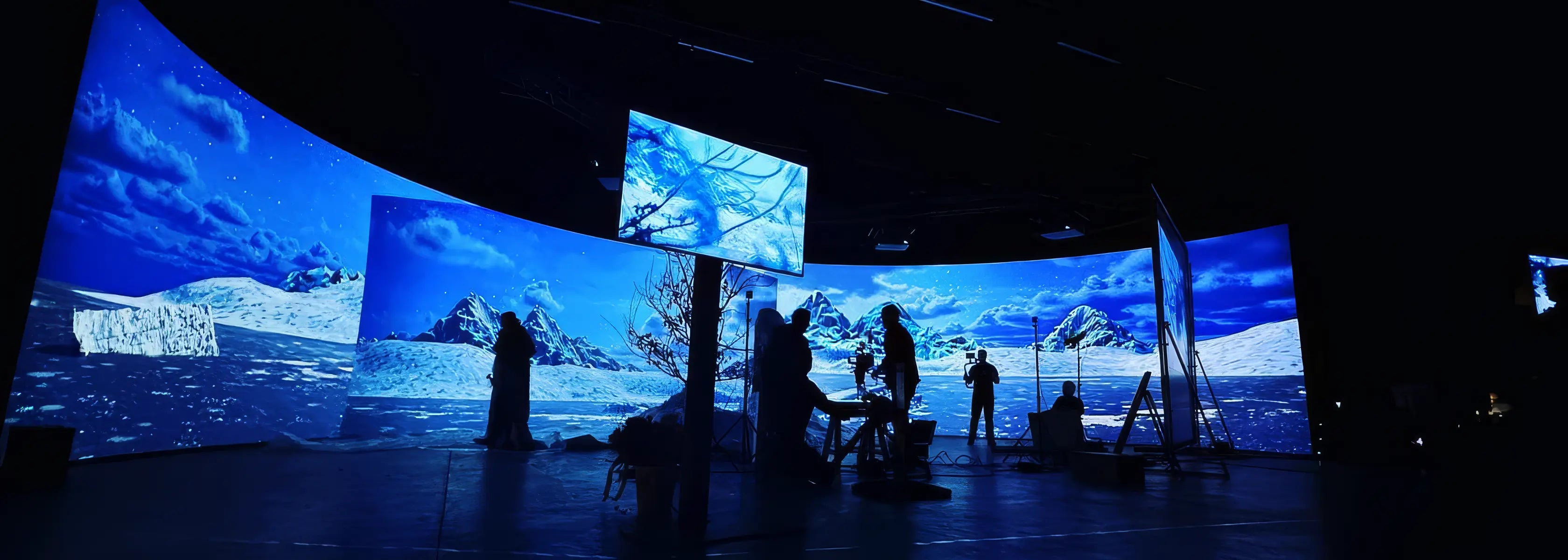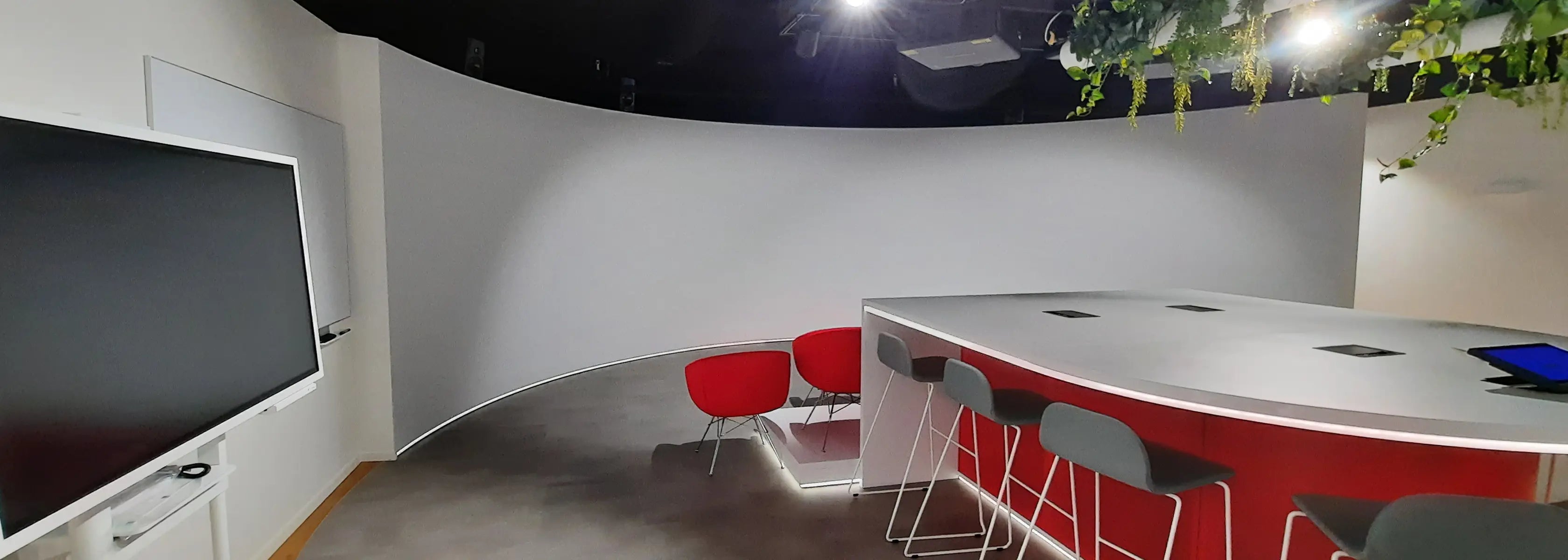 Curved Frames: Diese Leinwände sind auf einem gebogenen Rahmen gespannt, der ein immersives Seherlebnis bietet. Ideal für Filmproduktionen, Simulationen und Fotografie.