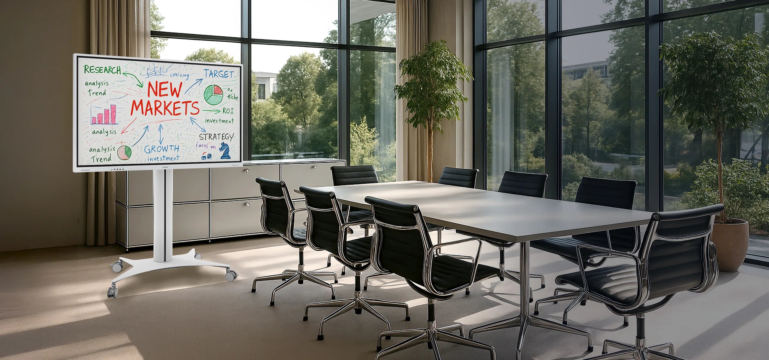 Zintegrowany, obrotowy uchwyt na wyświetlacz umożliwia szybkie przełączanie między formatem pionowym i poziomym. Idealny do różnych prezentacji lub sesji interaktywnych.