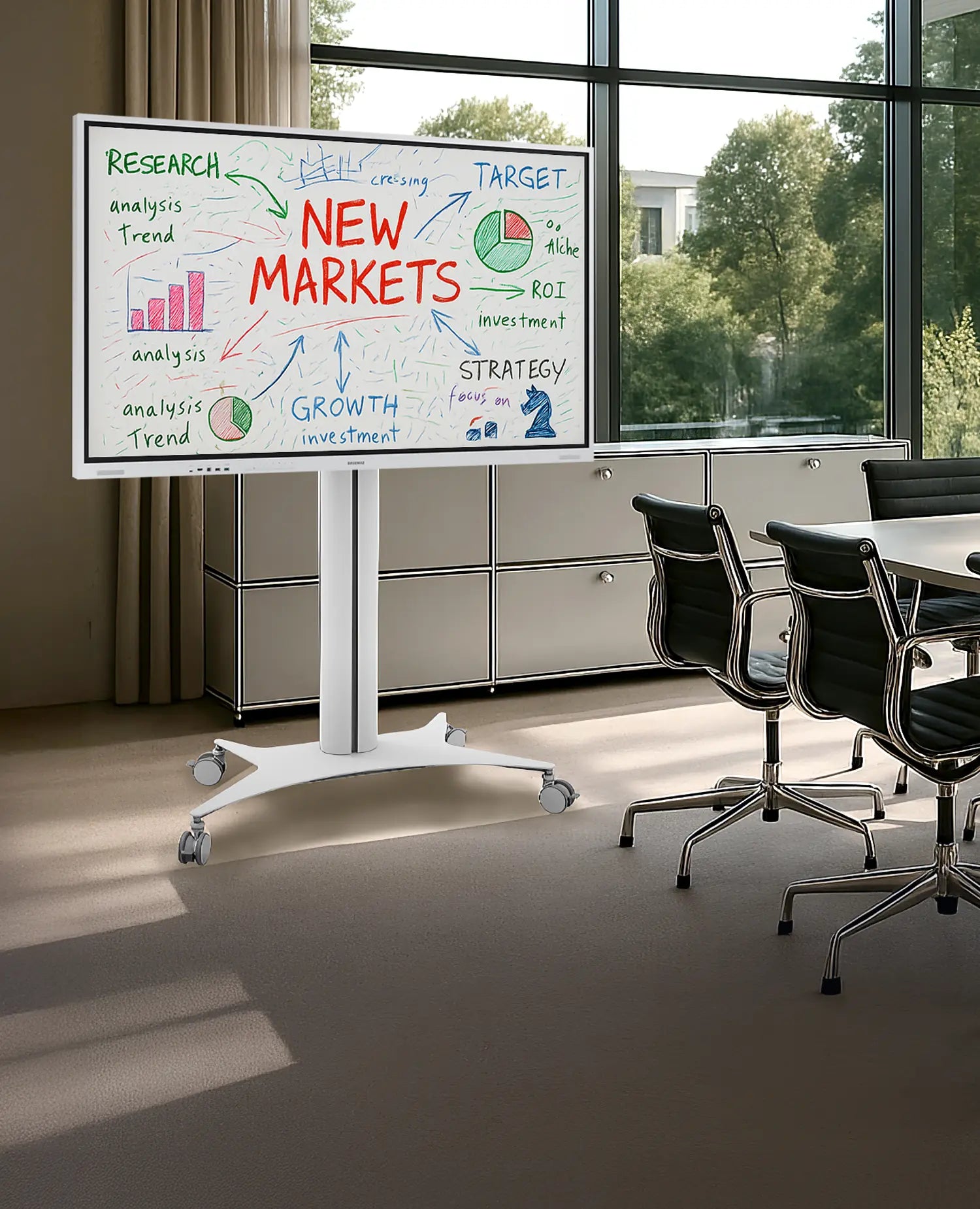 Zmień swoją przestrzeń roboczą lub prezentacyjną w nowoczesne, elastyczne i interaktywne środowisko. Niezależnie od tego, czy prowadzisz prezentacje, organizujesz warsztaty, czy pracujesz zespołowo - dzięki naszemu stojakowi (z regulacją wysokości) do modeli Samsung Flip jesteś doskonale przygotowany na każdą sytuację.