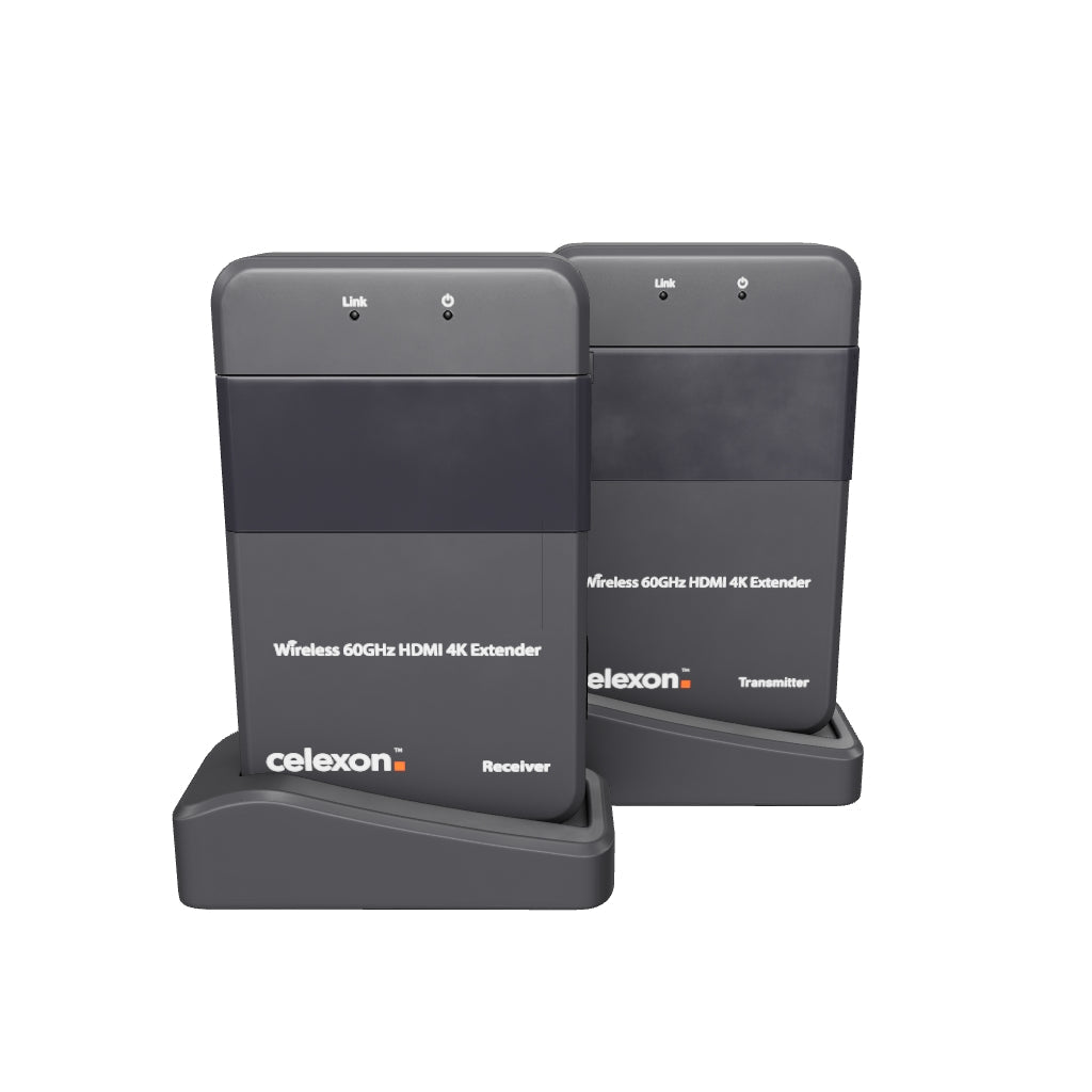 celexon WHD30M - 4K HDMI trådlöst system erbjuder knivskarp UHD-upplösning och fördröjningsfri signalöverföring. Det är enkelt att installera, arbetar självständigt på 60 GHz och stör inte ditt Wi-Fi. Flexibelt i strömförsörjning, kompakt design och stödjer olika upplösningar och format. Låg latens för synkroniserad ljud- och videoöverföring. Flera sändare kan anslutas till en mottagare eller vice versa. I leveransen ingår: sändare, mottagare, USB-laddadapter och -kabel. Trådlös frihet och imponerande bildkvalitet.